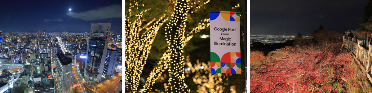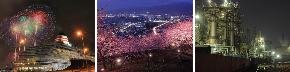 都市夜景からイルミネーション、紅葉や桜のライトアップ、工場夜景、プロジェクションマッピングなど幅広い夜景ジャンルに対応しております。