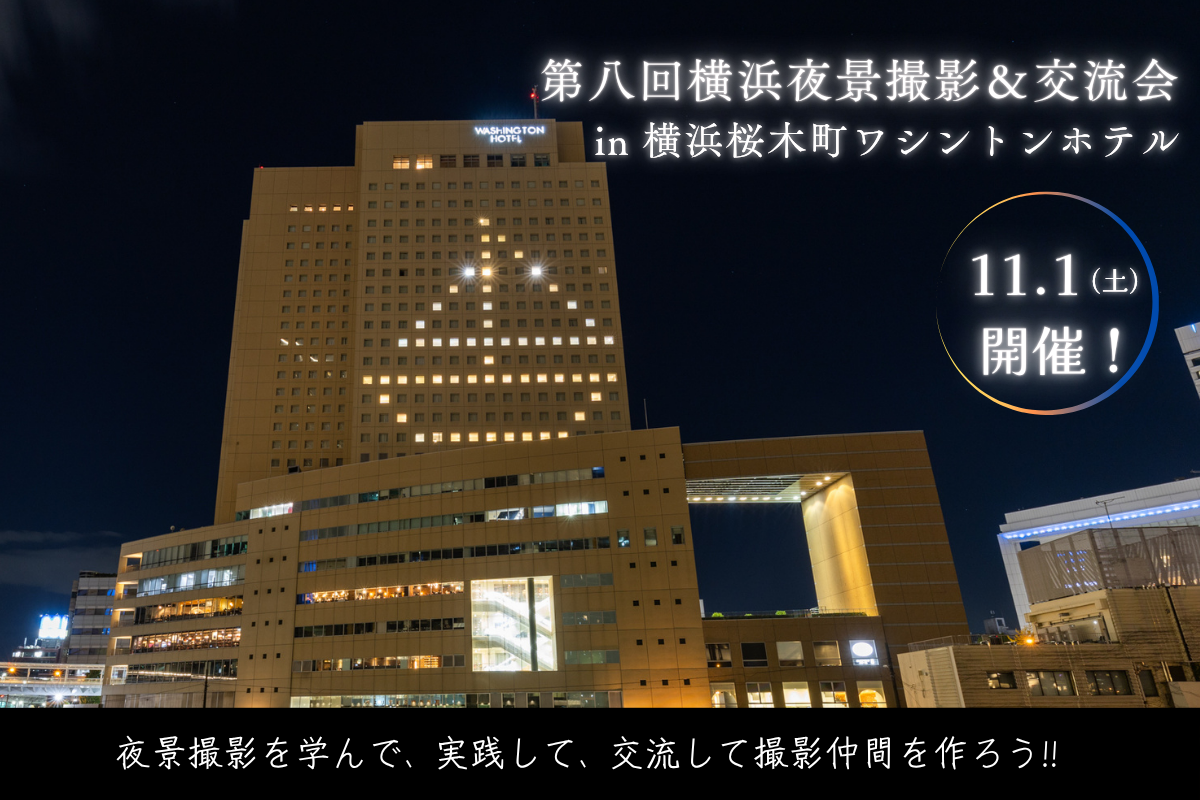 2025年11月15日(土)に開催される「第八回横浜夜景撮影&交流会 in 横浜桜木町ワシントンホテル(共催:藤田観光株式会社 横浜桜木町ワシントンホテル、日本夜景オフィス株式会社)」で、夜景写真家 中村勇太が講師を担当します。今回の撮影テーマは「モノクロ夜景」。セミナーでしっかり学べ、その日に実践もできる、そして交流まで楽しめる人気イベントです。撮影会後、さらにお楽しみがあるかも!?気になる方はお気軽にご連絡ください!